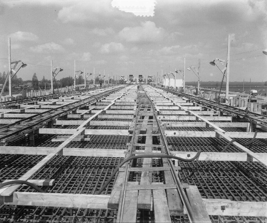 Aanleg van een nieuw viaduct op de snelweg Amsterdam-Utrecht, 11 mei 1953. Foto: Harry Pot, Nationaal Archief / Anefo